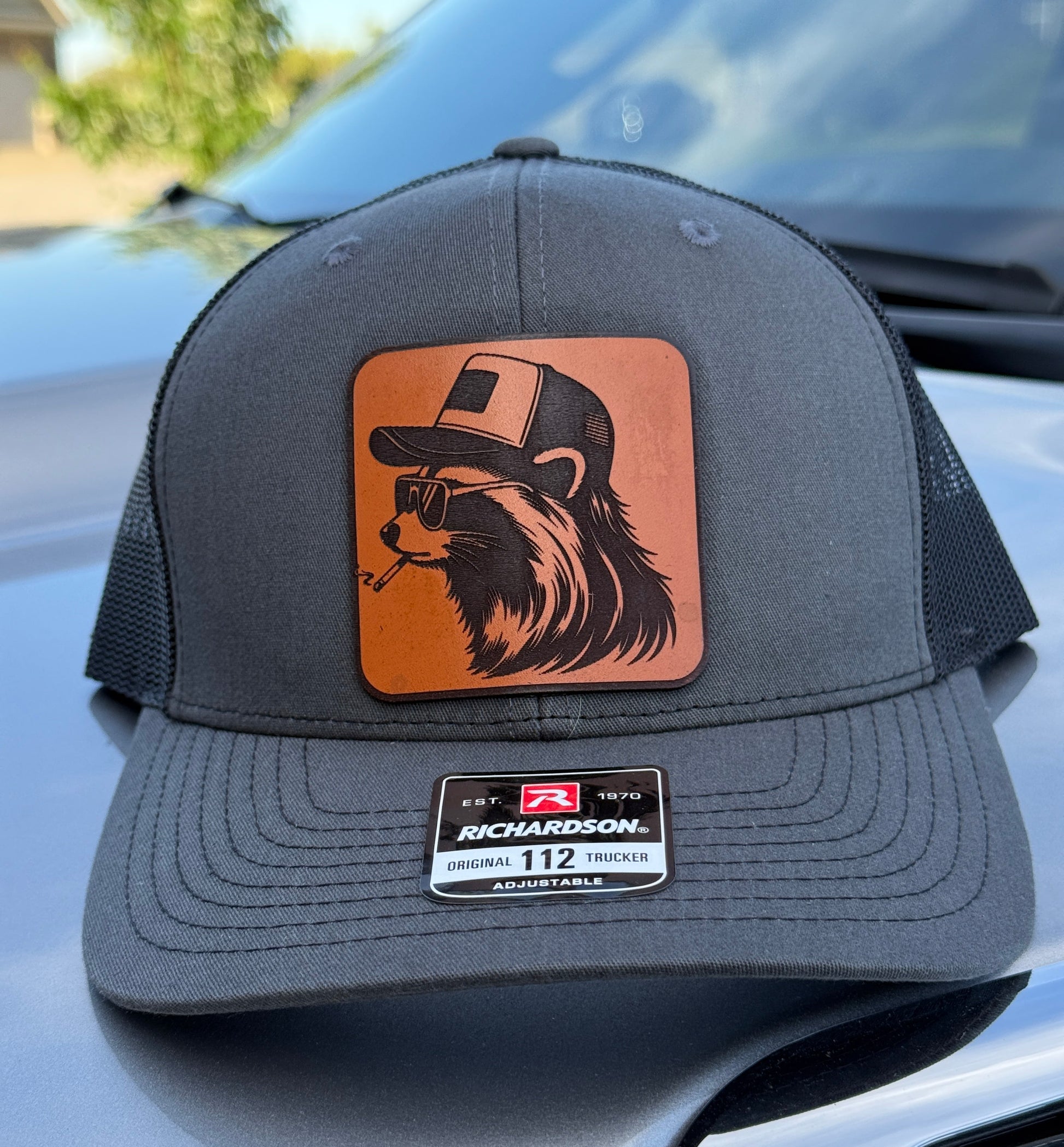 Pressed patch featuring a laid-back raccoon design with just enough attitude. Applied in-house on a finished hat with a clean fit and simple layout—made for the guy who minds his business and does his own thing.